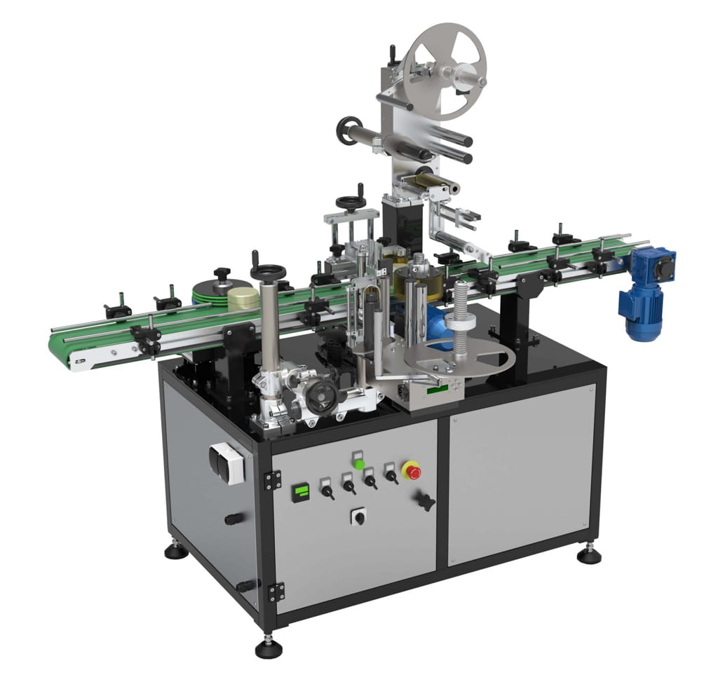 Этикетировочная машина - автоматическое промышленное оборудование предназначенное для автоматического нанесения этикеток на тару разнообразной продукции (флаконы с бытовой химией, упакованные продукты питания, продукция косметической и фармацевтической отрасли и т.д.).
